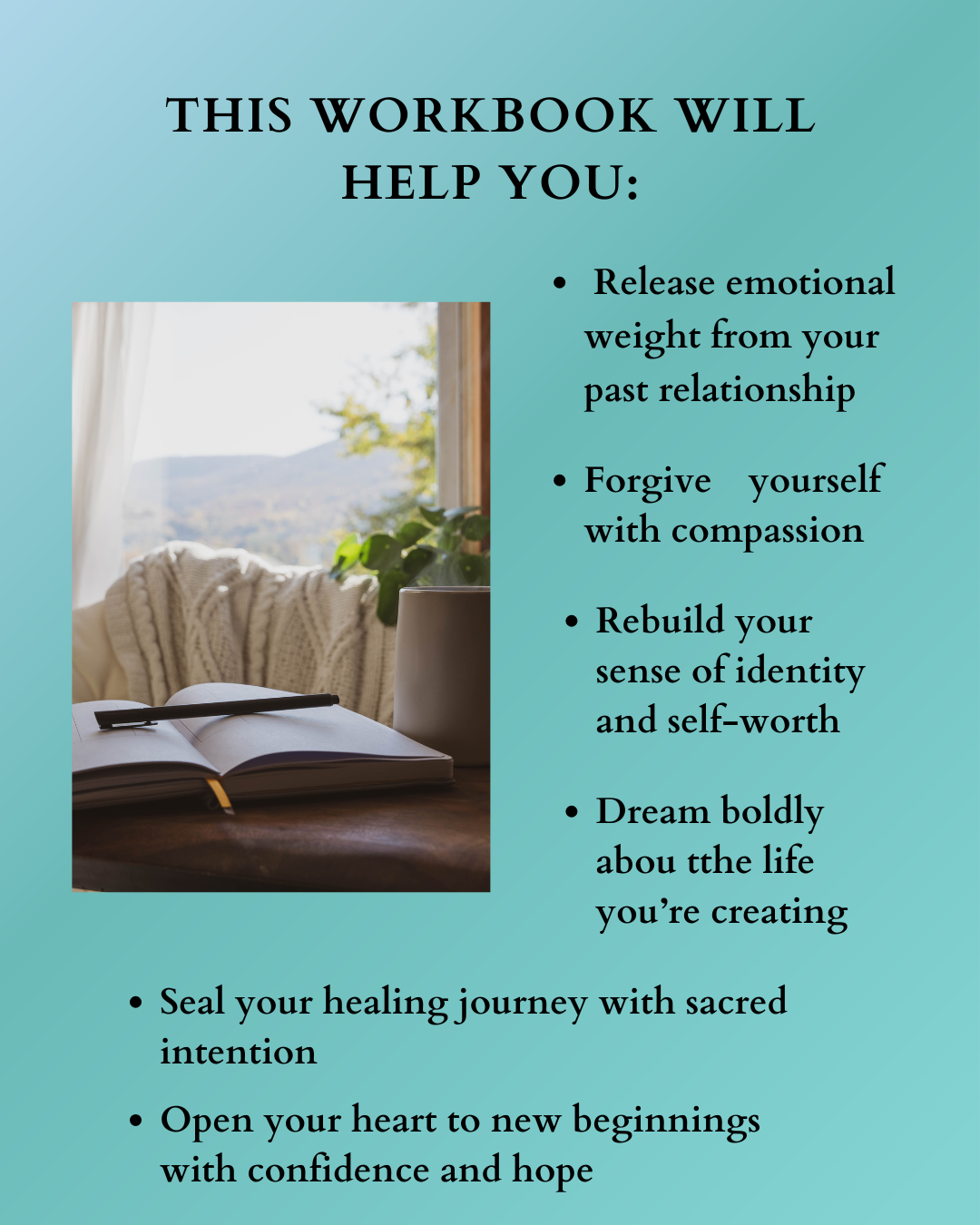 This guided digital workbook was created to support you through the emotional process of healing after divorce — offering powerful tools to help you release old pain, rebuild your identity, and step confidently into your next chapter.